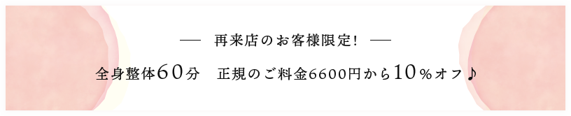 | 首肩こり・腰痛にお悩みの方♪ | 60分 6,600円 (税込) |